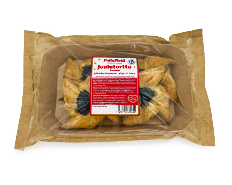 VEHNÄjauho, VOI, luumumarmeladi 26% [luumu (82%), sokeri, muunnettu maissitärkkelys (E1422), sakeuttamisaine (E440), happamuudensäätöaine (E330, E333), väri (E150d), säilöntäaine (E202)], vesi, MAITOjauhe, suola, rapsiöljy, entsyymi (VEHNÄ), jauhonparanne (E300).