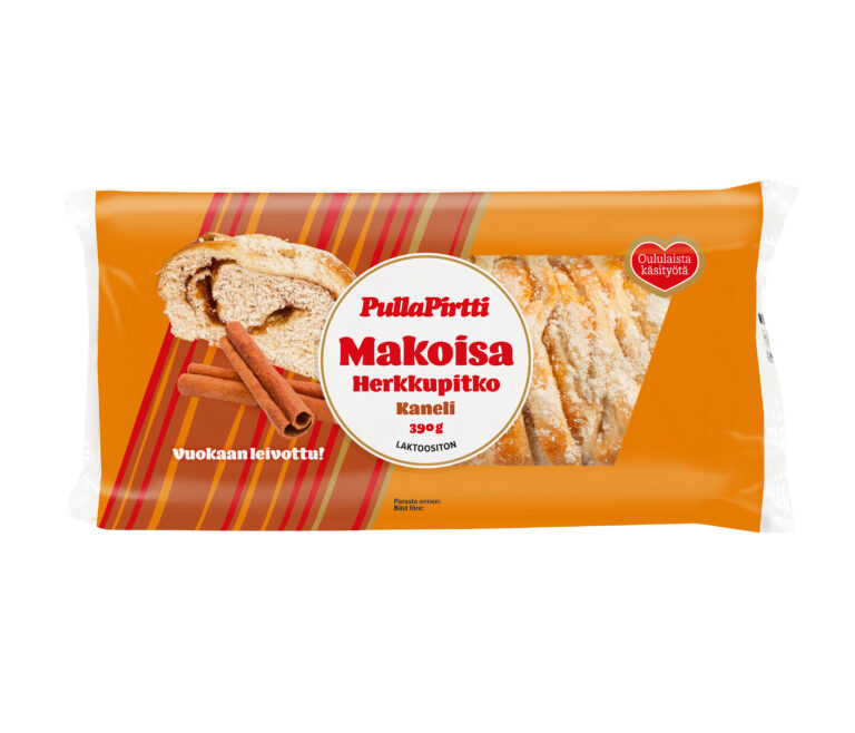 Mehevä vuokaan leivottu Kanelitäytepitko.